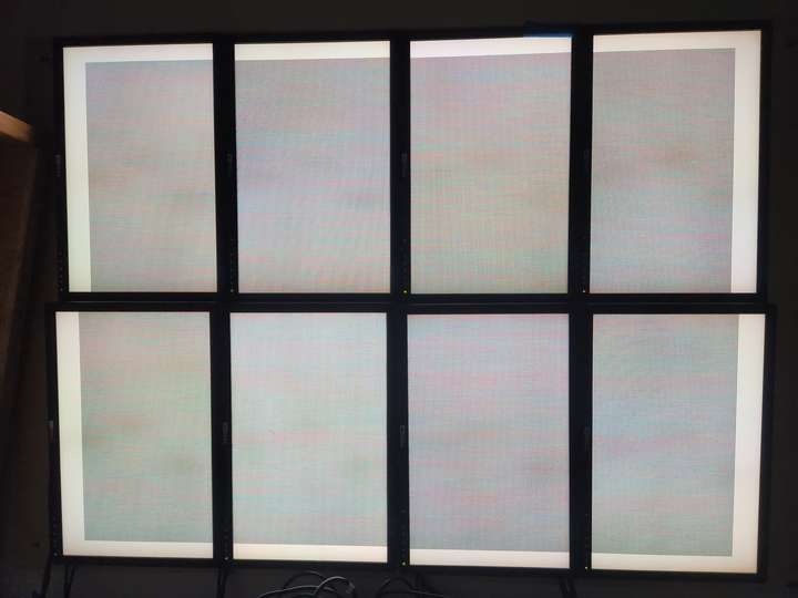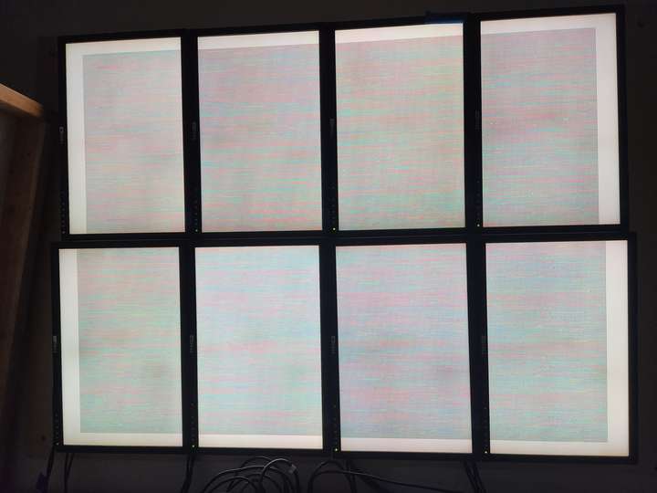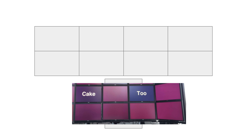 Rearranging screen display for cluster: 3x3 horizontal screens to 2x4 vertical screens. Intended to improve scaling and utilization of wall space.