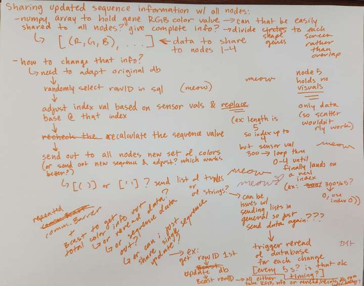 update_gene_surface.fill(bg_color)- Periodic constant Arduino data sent by serial into animation, including tweaks for rate of sending due to difference between data sending speed and animation updating speed.